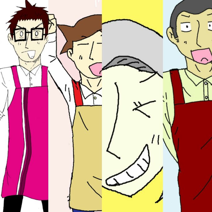 日本の総合スーパー4社。 左から、イオン、イトーヨーカドー、アピタ、ダイエー。 #総合スーパー擬人化 #擬人化 #自キャラが誰かの性癖に刺さってほしい