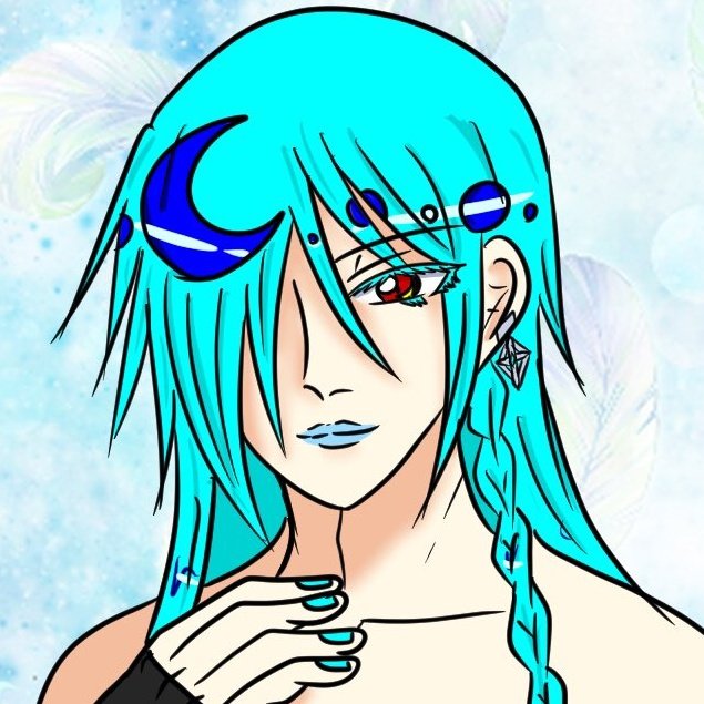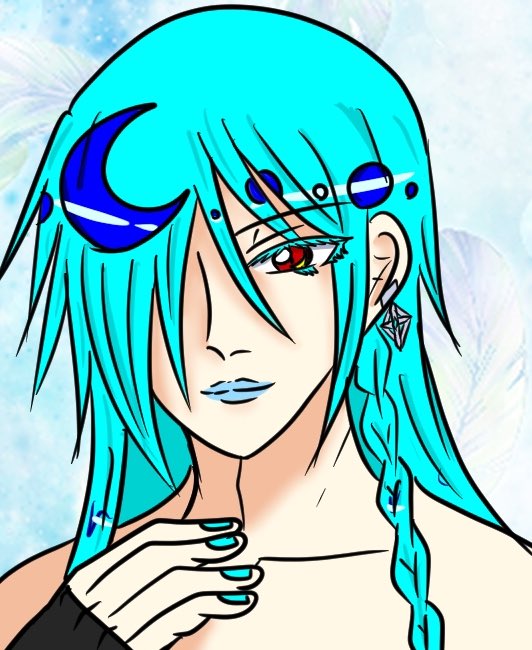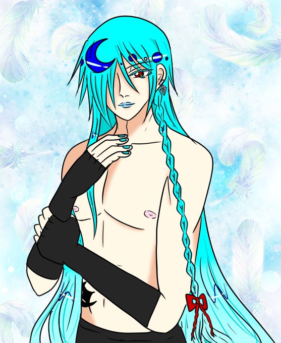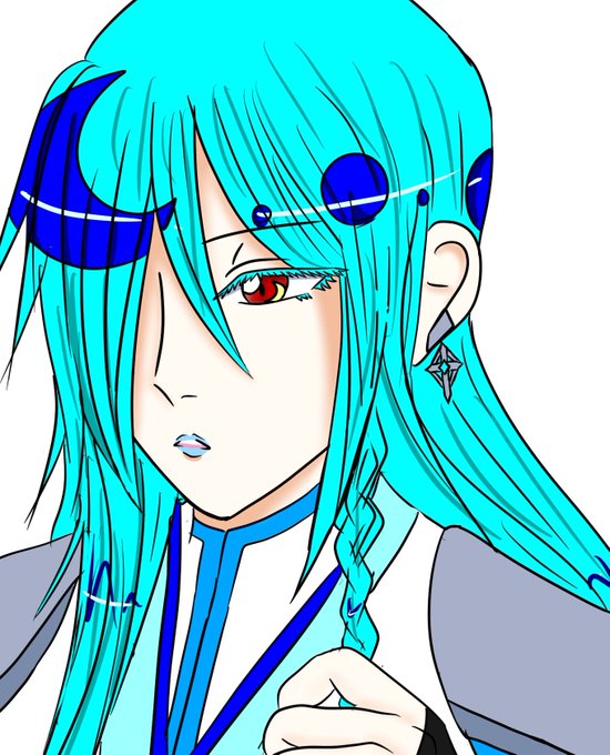 長い青い髪に赤い瞳 薄い水色の口紅 まだあどけなさが残る幼げな微笑み #闇神話LostTime