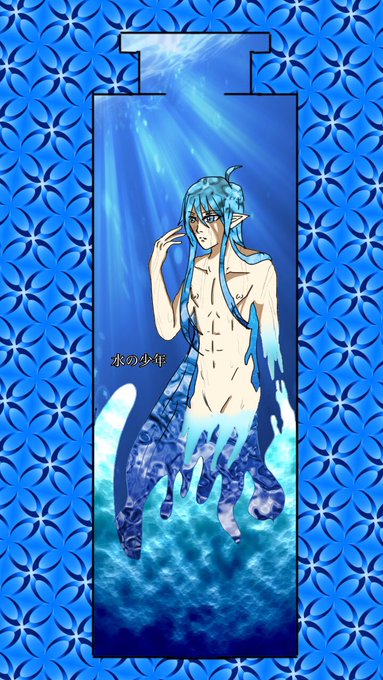 #長髪イケメン紹介祭り 青い髪の若き神々の王です(*⁰▿⁰*) うちちのメイン創作主人公