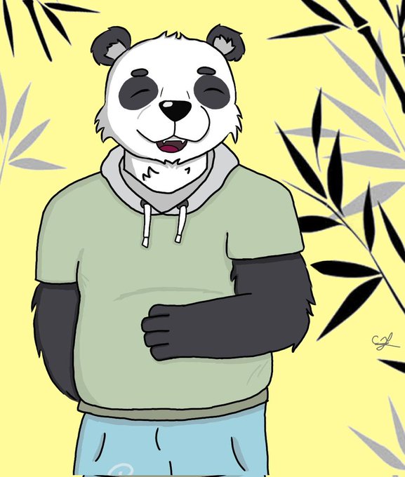 O panda que nasceu sem manchas, mas através de uma maldição sombras envolvem seu corpo simulando as manchas que deveria ter