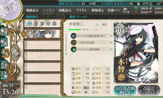 鳥海改二になりましたー 次は木曾かな