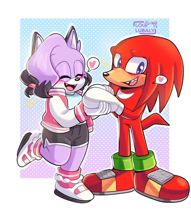 my part of an art trade that I did with @Spoiled_Eggman these two are very cute, Welkin and Knuckles make a beautiful couple💖