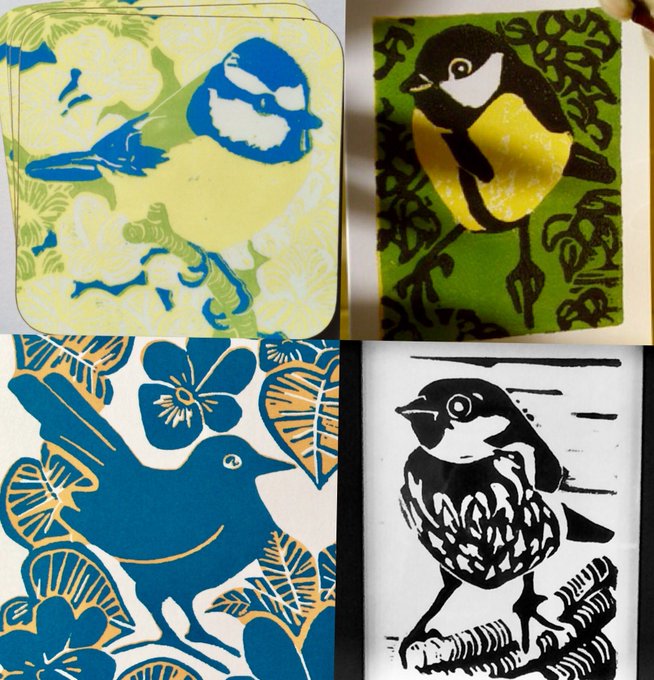 Springtime cards & coasters here #handmadehour #gardenbirds #linocut