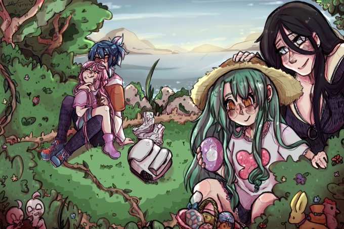 I heard that Japanese kids don’t celebrate Easter,which I thought was sad bc Hinako would prob love it. So I made up this rlly cute scenario where Aiko and Kuroko buy chocolate for the girls and hide them somewhere so they can look for it and stuff,idk it’s cute @yoshimurakana