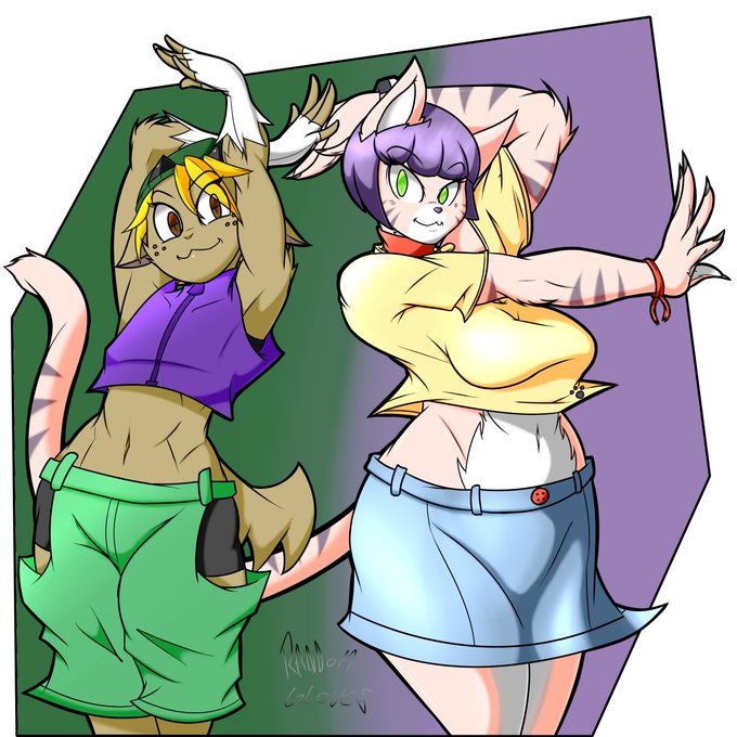 Little draw of my o.c Rusty, and Jisito's o.c Laura, doing cool poses ayy