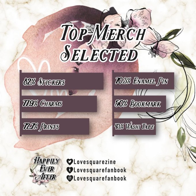 We heard you loud and clear- 95.6% of you guys want MERCH! And not just that, our most popular merch options are; stickers, charms, prints, pins, bookmarks, and Washi! 🌟💫