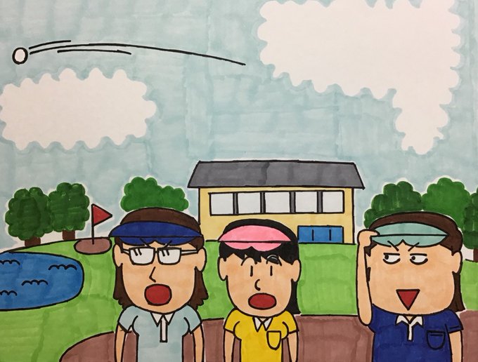 「#浜の若い母ちゃん」です。ゴルフのユニホームを着る母ちゃん(きみこ)。クラブで打つ勢いも凄い!。漁協婦人部の仲間とゴルフを楽しみました!。カートでも飲酒運転は、ダメダメ…。#漁師の妻 #漁協婦人部 #ゴルフ #ゴルフカート #飲酒運転