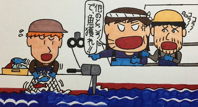 「#浜の若い母ちゃん」です。世間は、3連休真っ只中。連休なんか関係なく魚獲りを頑張る夫!。母ちゃんは、子ども達を連れてドライブ中です。レストランで、注文する母ちゃんに注意する娘であった!(笑)。#漁業 #漁師の妻 #3連休 #ドライブ #子ども #レストラン