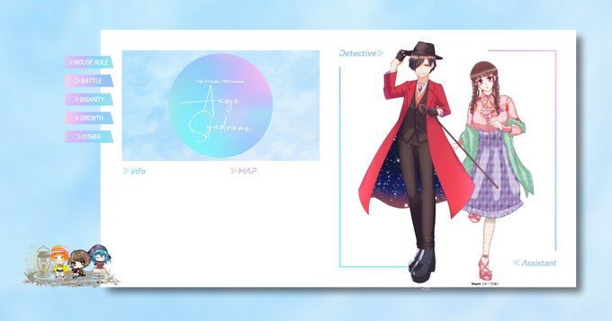 『Ange Syndrome』 KP→りす PL→コデッタ(Poirot) PL→奏河(Maple) ――――両生還* 生還してくれました👏 賑やかなお二人で来てくれてありがとう~!! 今回のクリファン差分も用意してました🥰
