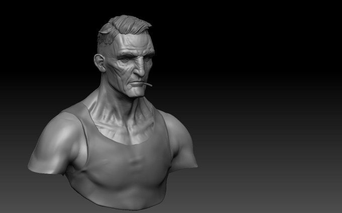 #3dBustChallenge WIP, I wanted to tackle a fan piece from the insanely talented Cedric Peyravernay from #Dishonored2.