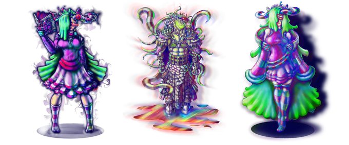 So far I have drawn @Wattchit_ch @king_kriminal and @Rosemi_Lovelock as monsters and for each one I draw the more powerful I become lol, here they are in order of whose name I tagged first lol