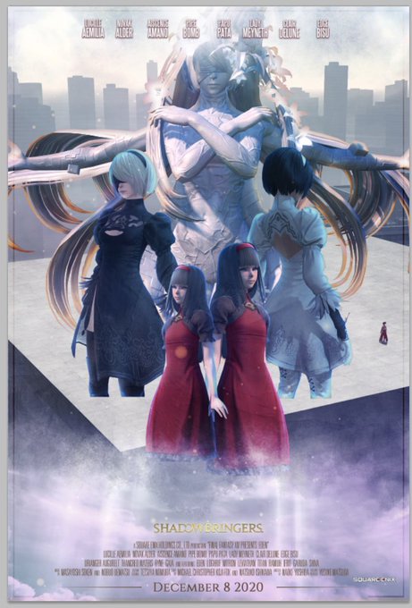 early conceptual wip of my new poster - YoRHa Dark Apocalypse! There will only be one red girl in the final piece, just using her as a placeholder for 9S. Also plan to add stubbies, the two dwarves and some other content in time :) #FFXIV