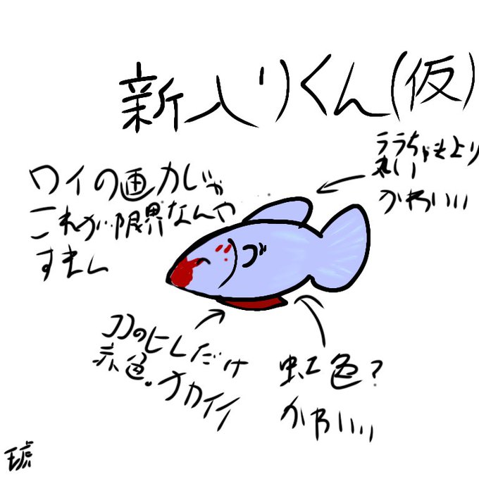 噂の新入り君(仮)!字がきたねぇのは許して…新入り君上手く描けるよう精進いたしましゅ…モノホンはめっちゃ綺麗でかわゆいです #むてきまる #MutekimaruART