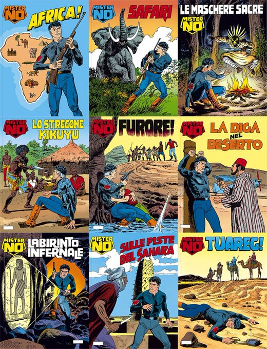Sono molto affezionato a questa manciata di copertine (che rappresentano la lunga trasferta africana di Mister No) tanto da essere indissolubilmente legate ai miei ricordi di estate da ragazzino. E "lo stregone Kikuyu" era diventata una risposta adatta a ogni tipo di contesto.