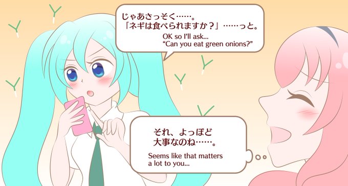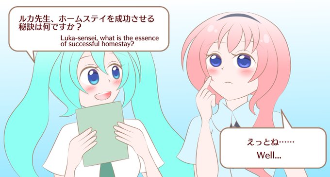 ホームステイに来る留学生の連絡先をGetしたミクちゃん!張り切ってルカ先生にホームステイ成功の秘訣をインタビューしています☺🎤