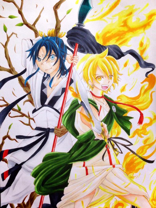 久々の版権。 コピックでマギのアリババと白龍。 白龍は本当は堕転した姿描きたかったけど服むずいからやめた。