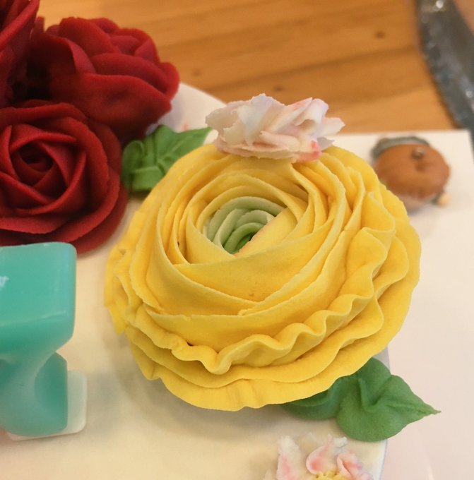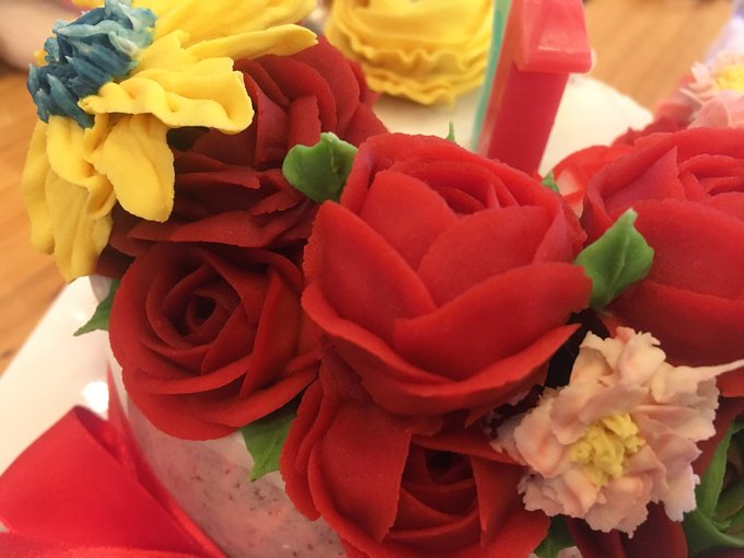 예쁜 다이마루 화환 그림은 융님께서 협력해주셨구 케이크는 떡케이크로 앙금꽃은 다이아와 마루의 퍼스널컬러인 빨강과 노랑, 리본도 다이아색으로 맞춘 주문 제작품입니다٩(●˙▿˙●)۶