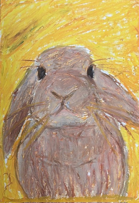 午前中の絵(お昼すぎてますけど) ご飯食べて着替えて発送頑張ります! この絵も今日中に出品します。 #障害者アート #うさぎ #柴犬 #虎