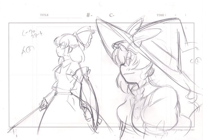 4話で霊夢たちがスカーレット姉妹と話してる所ですね。ここは私が自分でレイアウトを切って原画を描いたので、その下描きが残ってました。