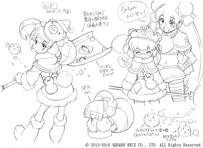 スクウェア・エニックスさんのブラウザゲーム『ブレイブリーデフォルト プレイングブレージュ』の3月の新キャラを描かせて頂きました!娘たちをよろしくです~(⊹^◡^)ノ
