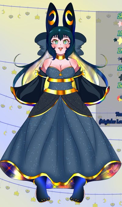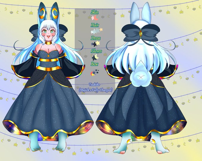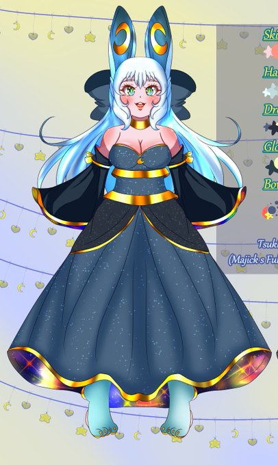 Tsukiko naturally looks exactly like her mother, the Lunar Goddess, Rudaliya. She's also naturally the size of her thumb