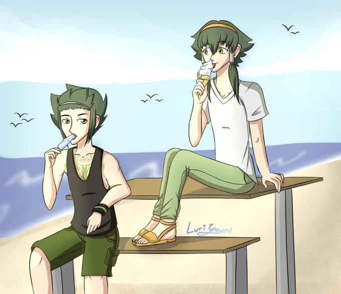 Weather has been pretty damn nice here the past few days so ofc I had to draw Sync and Ion enjoying some ice creams on the beach!