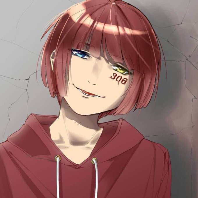 髪色 赤 髪型 結んでるのと結んでないバージョン 目の色 青と黄色のオッドアイ 目の下に306 アナログでもデジタルでもお待ちしております!!(๑⃙⃘´༥`๑⃙⃘)