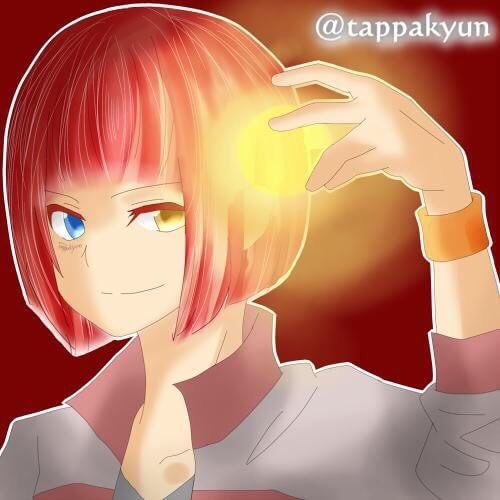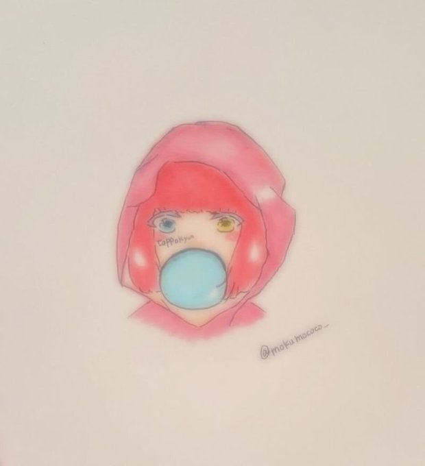 髪色 赤 髪型 ぱっつん 目の色 青と黄色のオッドアイ 目の下に血で306 デジタルでも、アナログでも、お待ちしております!!(๑⃙⃘ˊ꒳ˋ๑⃙⃘)
