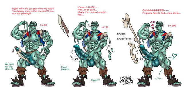The third in the series of TF/MG commissions requested by @arcwuff , this time featuring his boyfriend as an rpg warrior fighting slimes! Thank you for your patience and help with the dialogue!