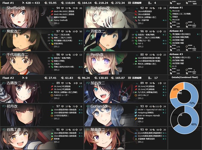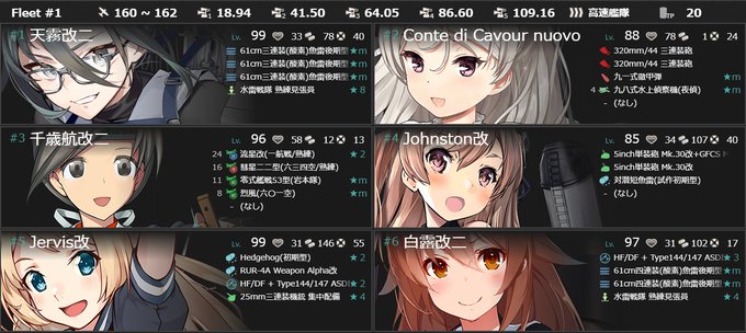 E-1の突破編成です。 ラスダンは制空拮抗のミス。。。 #艦これ