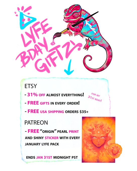 If you decide to order, or join my Jan Pa+reon, I promise to spoil ya! The chameleon will show you my giftz 😛