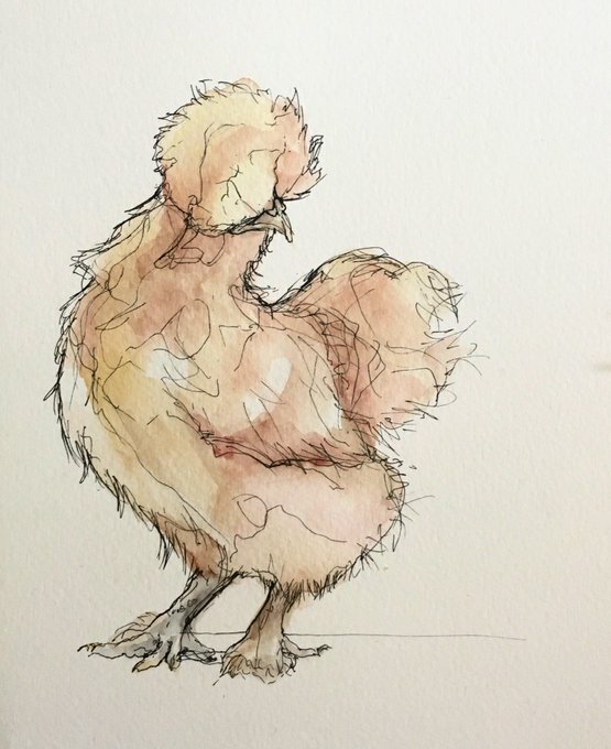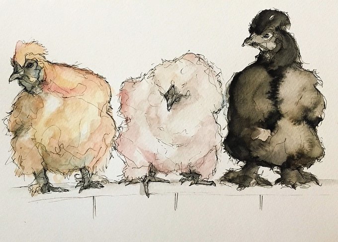 Three Silkie Chickens in Pen & Watercolour 🖊 🎨 Never realised just how many types of chicken are out there 🤔