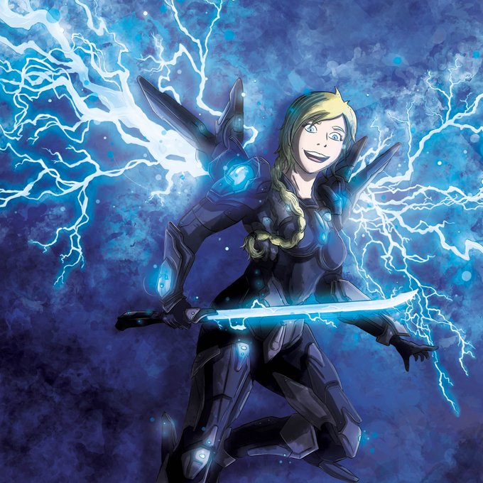 Nova-7 for @AnxietyDragon, complete with a mech suit and lighting wings