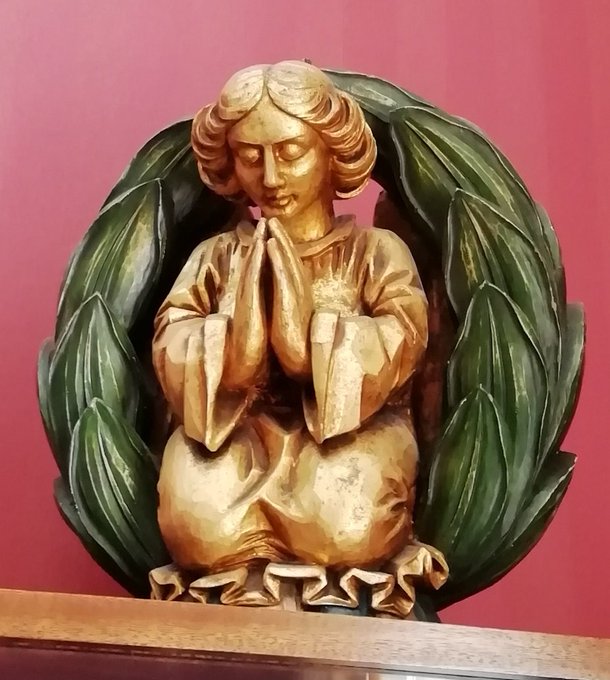 Today's crest belongs to Algernon Keith-Falconer, Earl of Kintore (1852-1930), former Governor of South Australia. "An angel kneeling at prayer Or within an orle of two laurel branches Vert."