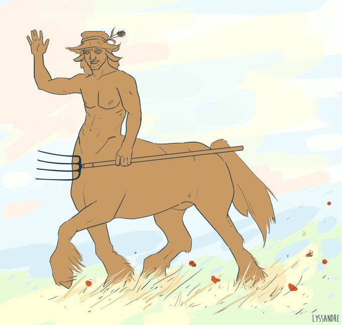 My drawing for the Character Design Challenge of the month (Centaurs theme)! So... it's... a farmer centaur. XD