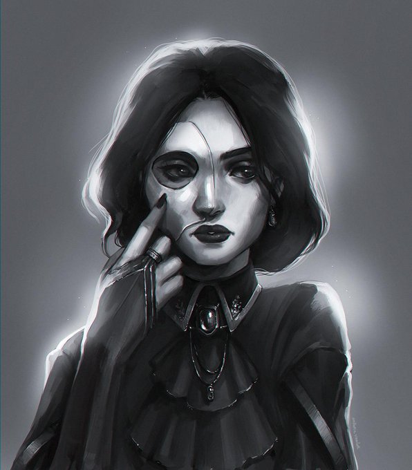 @VictorPCorbella Ooh, that's an interesting one. Here's my goth queen with her phantom of the opera mask - Maeve Curwen (art by @/Un_EpicMushroom).