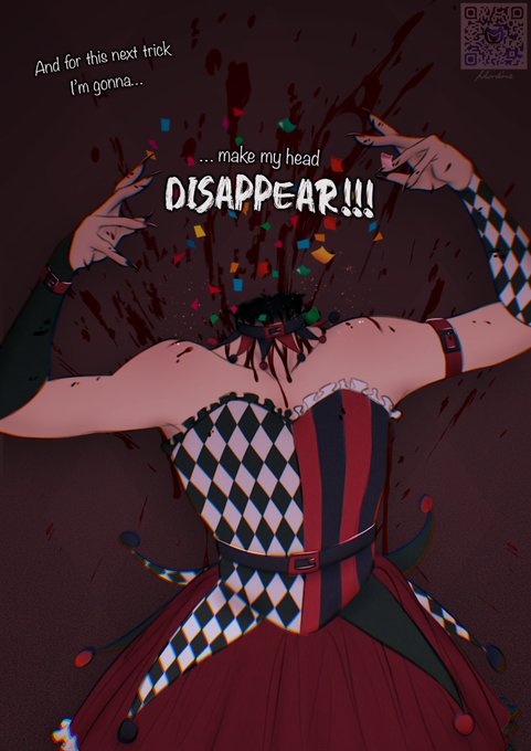 My october mix&match of @_oceaninspace’s and @diamondwolf_art’s prompt lists starts with a jester+decapitation combo 🖤 #GoreTober2022 #goretober