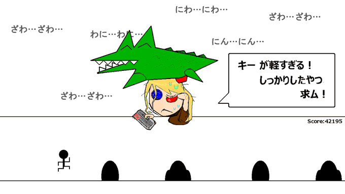 『うさぎパンチ』 キーボードクラッシャーゲーム(違う。いや違わない)細かい要素は散りばめられているものの、9割はウサギがひたすらパンチするシンプルなゲーム。まさにうさぎ+パンチ。土用の丑の日にピッタリ、精力が付きます。現在の仕様的にHIT99を目指す気力が続かなかったのが少し心残り。