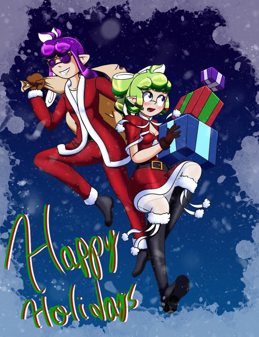 Merry Christmas and Happy Holidays to all! Looks like Amaranth and Orchid are all ready to give out their gifts. #Splatoon #ChristmasDay2018