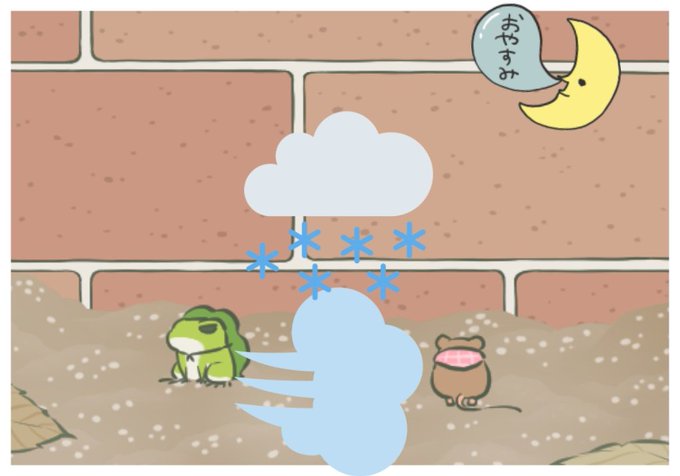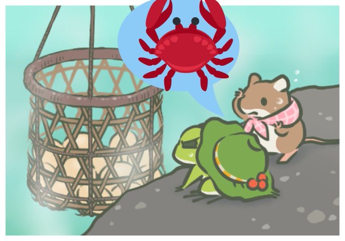 太郎丸🐸達は、温泉地で迷子になった🦀君を、探してる? 🐸…この中に居ないよね。