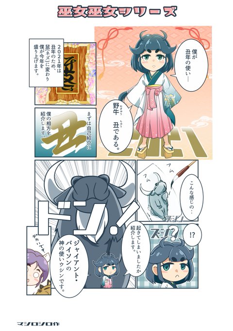 こっそり深夜にイラスト投稿(>_<) 丑(ちゅう)さん 「今日は牛がよく降りますね。」