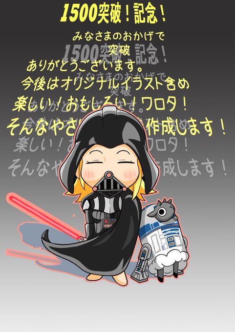 なんと!このSTARWARSネタが人気なのでありがたき( ̄∇ ̄) 各キャラを載せます! ①マシロ・シロ・スカイウォーター ②R2-D2ヒツジ型 ①「ふふふ…ついに宇宙は我の手に!」 ①「なぁR2!お前は何が欲しい!」 ②「…カレー」 ①「…。」