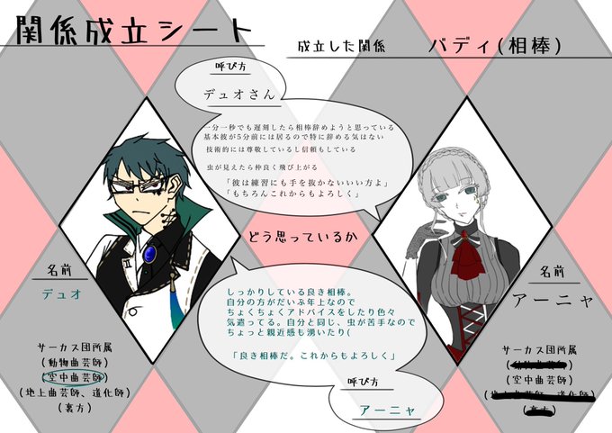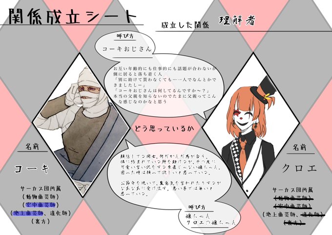 #ルーラーサーカス団_関係成立 コーキおじさんと関係組みました〜!! お互い謎の距離感で仲良くしてます!