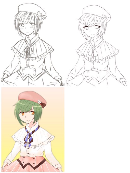 *3人で下書き線画塗りを交換して絵を完成させる 花红さんとぬぬぬちゃんの 三人で描きました♪ 二人とも下書き、線画、塗りすべてセンス良すぎます…。楽しかったです!