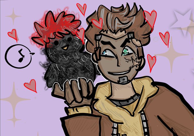a very special commission for @sentient_roomba! they wanted timothy and a little zer0 chicken! <3 this was so much fun to draw and i super hope you love it!! ;A;
