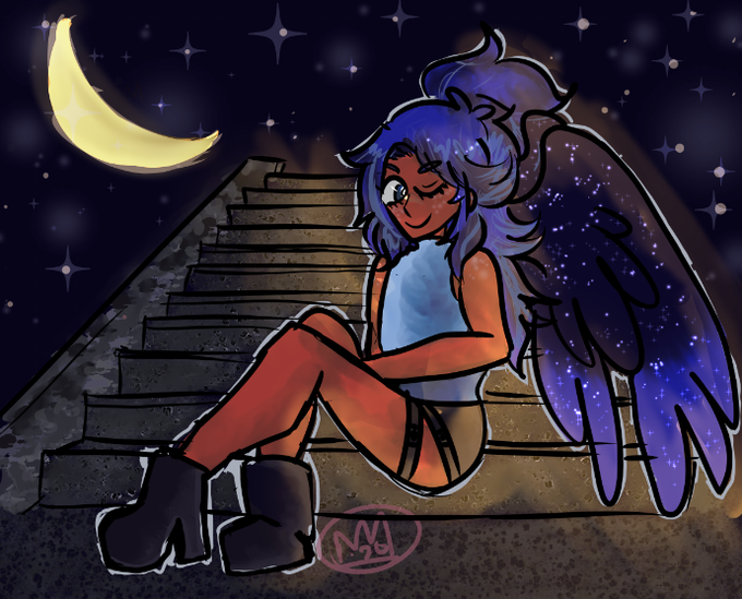 the super sweet @bIackbiirds commissioned me to draw their gorgeous oc umbra ( a personal fave of mine ).......................................... tried a Lot of new things ( background, stars, lighting )!!!!!!!!!!!! thank u once again for letting me Draw your boy