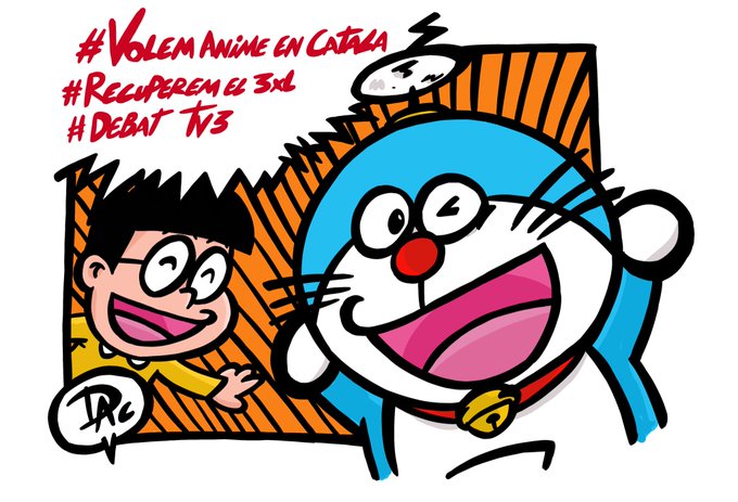 Os acordaisque el dia 11 di la turra con estos cartelitos ? Pues los he entintado y coloreado para seguir dando la brasa a @tv3cat #volemanimeencatala que torni el Doraemon que ja es tota una intitucio a Catalunya