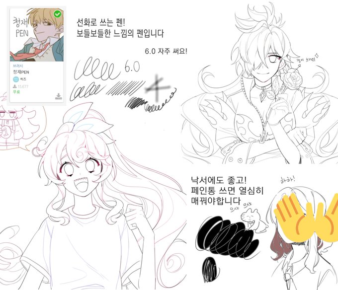 재업하는 먹브러쉬 그림들✨✨ 다들 먹브러쉬 하실래요😉💝