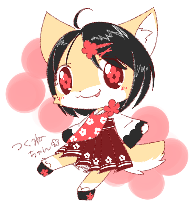 キャラ化! つくねちゃん【 @Diga_foxdog 】 イメージしたとたん,和風にしたいっ!って思った.梅のお花モチーフ. カラーリングはきぐるみの子をちょっとイメージ.