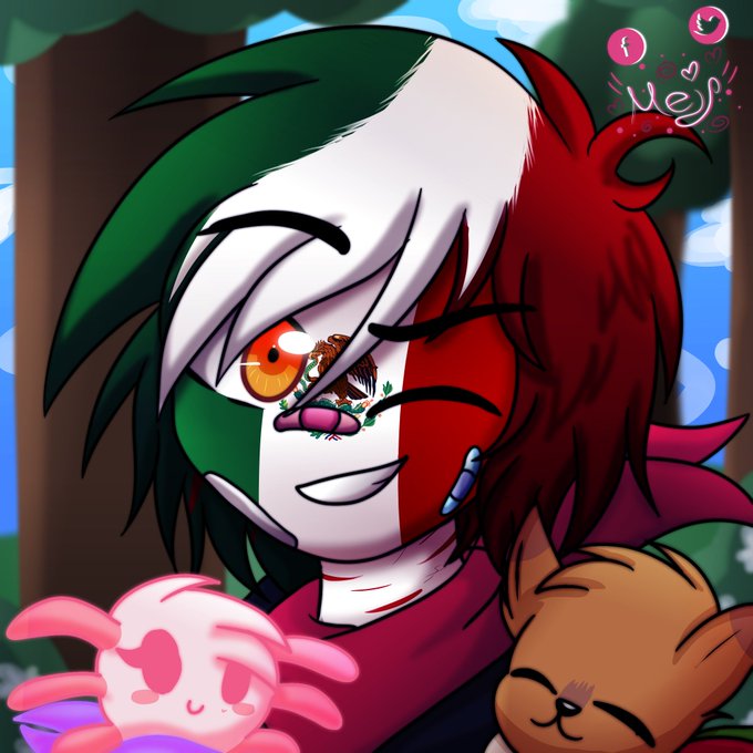 :"v perdón por andar inactiva estoy algo ocupada :"3 pero les dejo un pequeño dibujito de mi México con su agolotito y obvio paco uvu💕💕